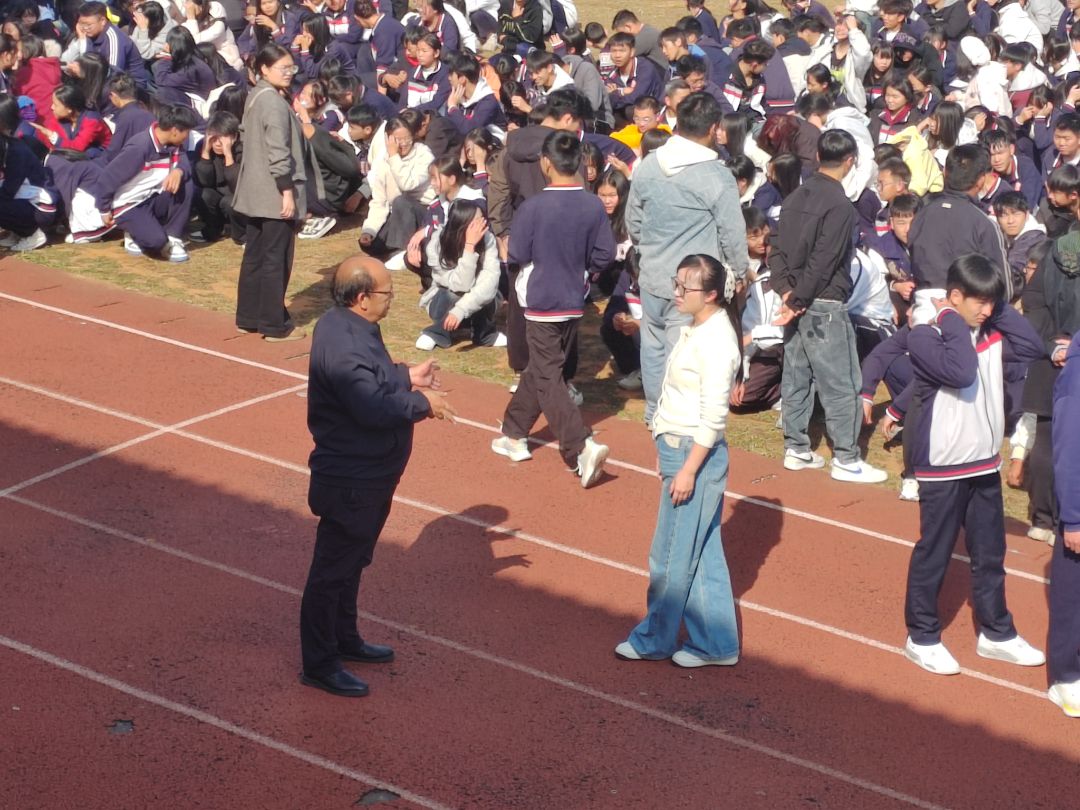 抵达操场集合点后,各班学生立即原地蹲下护头,在班主任、跟班班主任组织下快速整队,班长清点人数并逐级上报。全体师生安全、快速完成疏散,无一人掉队、无意外发生。经总指挥核实人数无误后,宣布本次地震安全疏散演练圆满成功。