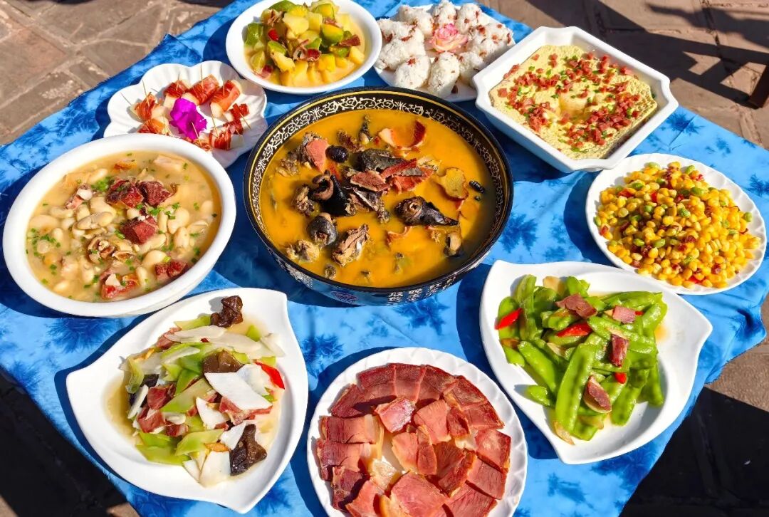 千年一味,一味千年!悠悠岁月雕琢出诺邓火腿的悠长韵味。诺邓火腿肉质紧实,纹理间藏着时光精华,香气醇厚,地道风味值得品尝。烟火云龙,市井繁华,太极游道“太极夜市”全天候开放,提供云龙特色小吃品鉴、农特产品展销、文创好物售卖、篝火打跳等特色服务,点亮夜间经济,重现盐马古道繁华市井。