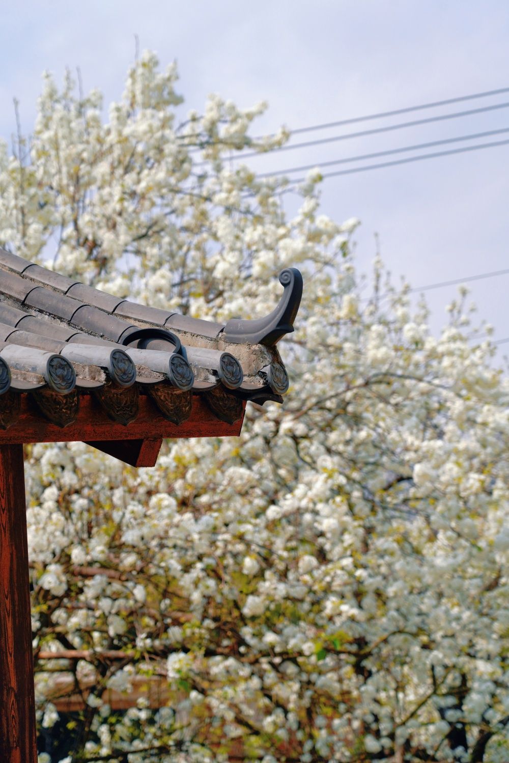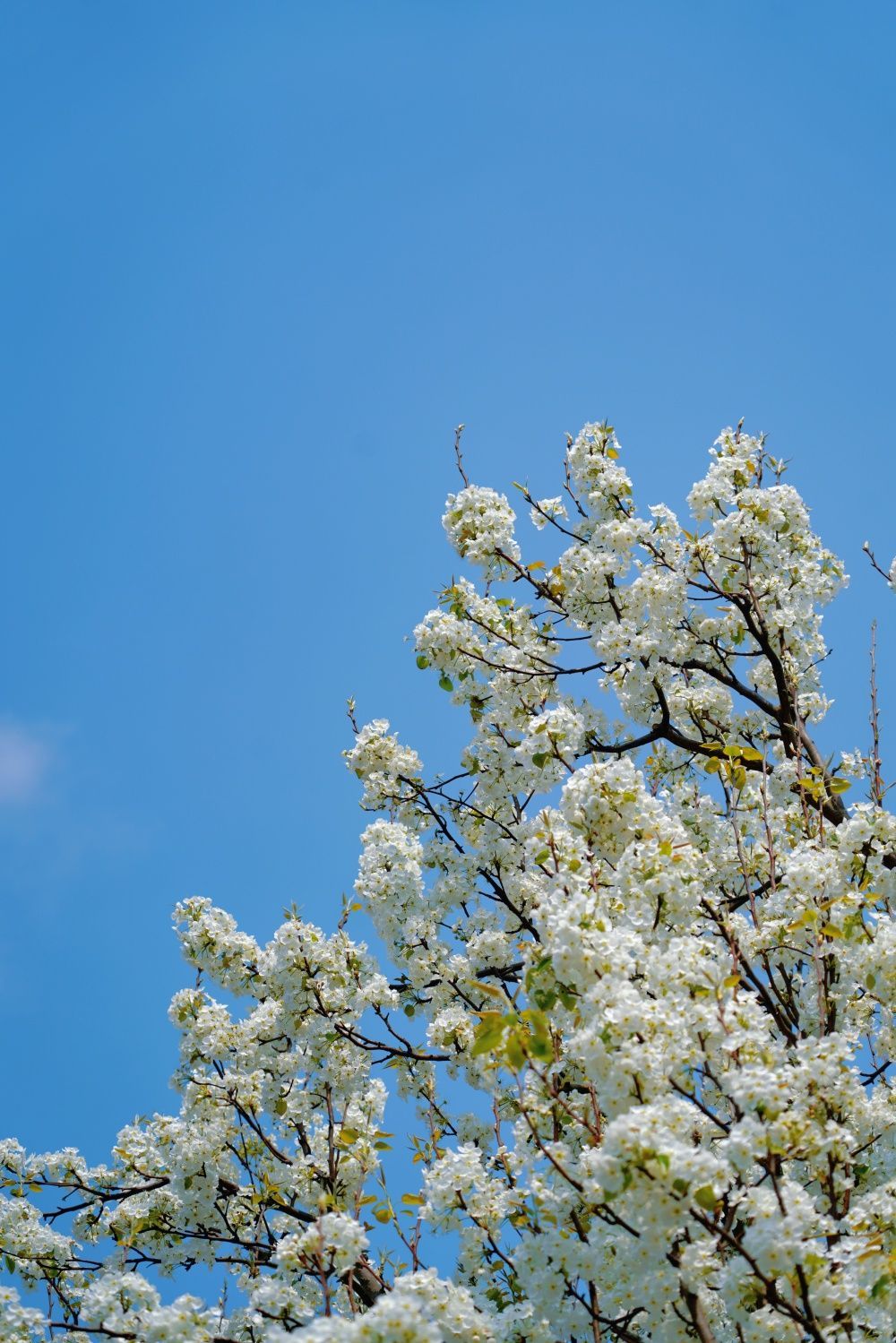 漫山梨花盛放,雪白的花朵挂满枝头,将山谷装点成童话般的世界。
