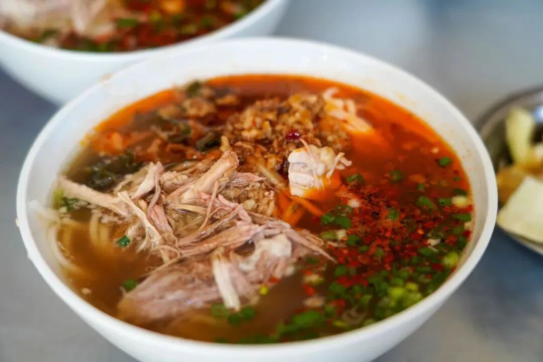 再配上花生碎、酸腌菜等佐料