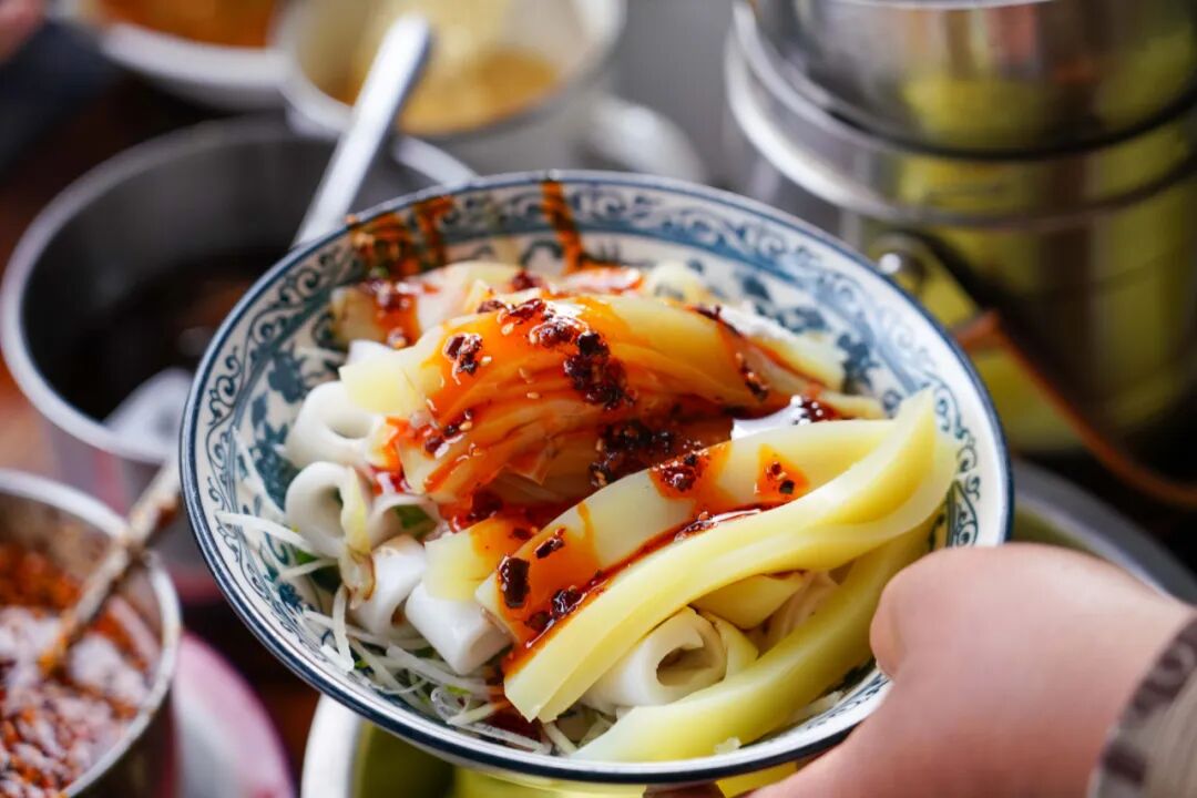 配上辣椒油、葱花等佐料