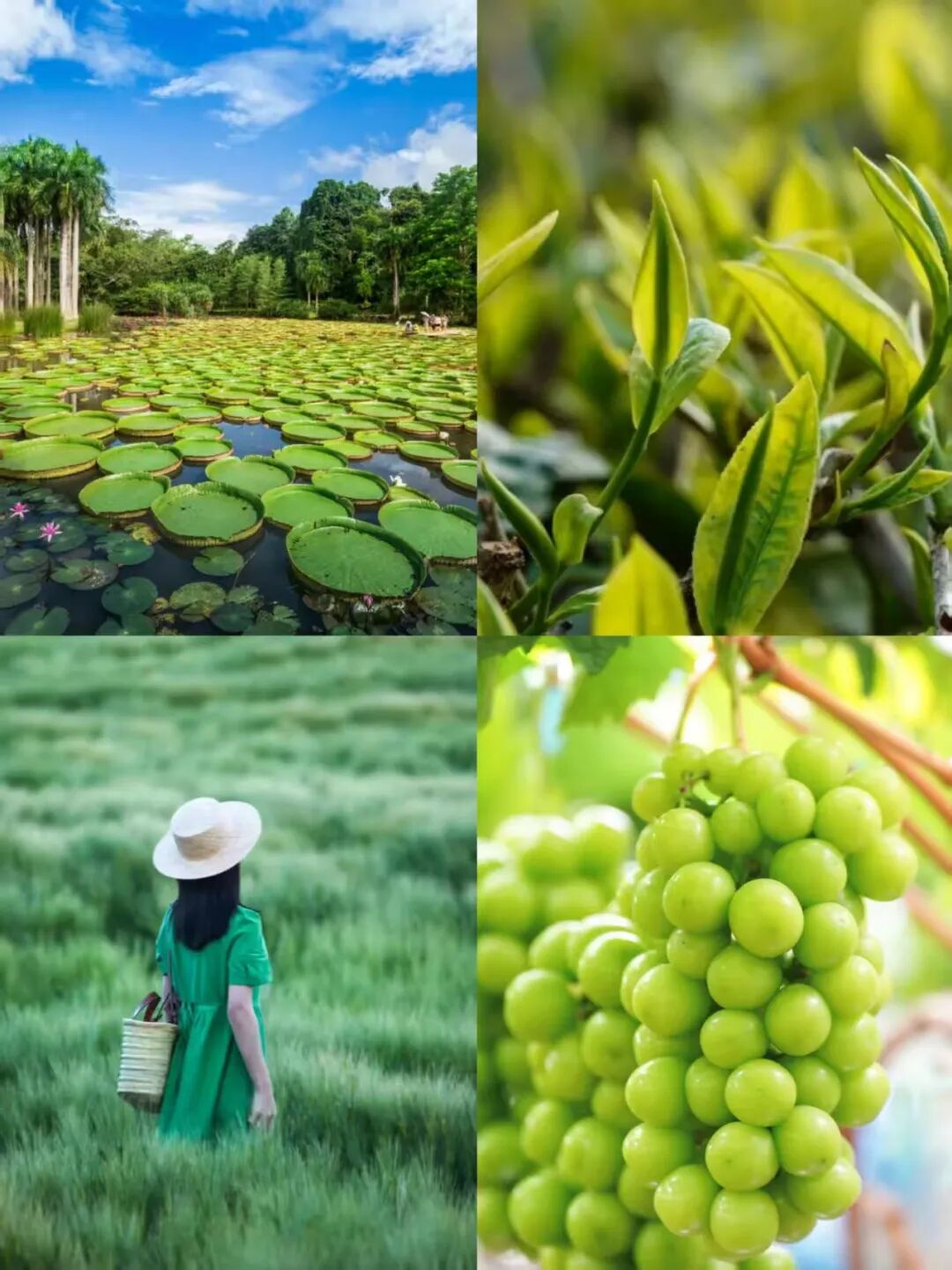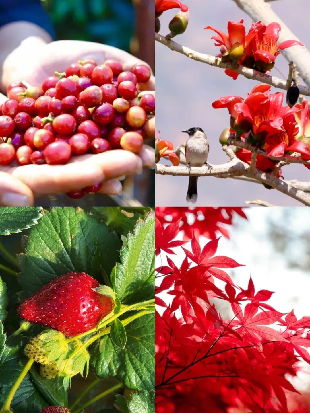 樱花粉、杜鹃红、天空蓝、菜花黄、嫩芽绿
