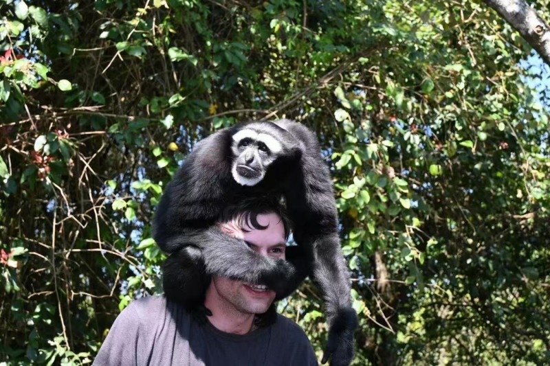 还有倒挂在树枝上的长臂猿叮叮