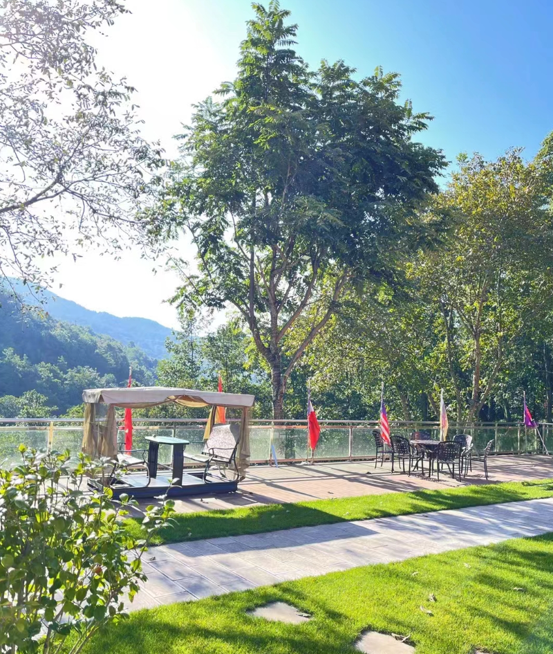 住在这里,推窗即见山景云海,日夜可赏霞光星空。餐厅供应当地时令食材烹制的茶餐与药膳,提供奶茶、咖啡等轻食。户外草坪广场可以烧烤、露营与篝火晚会,是小长假度假的理想场所。