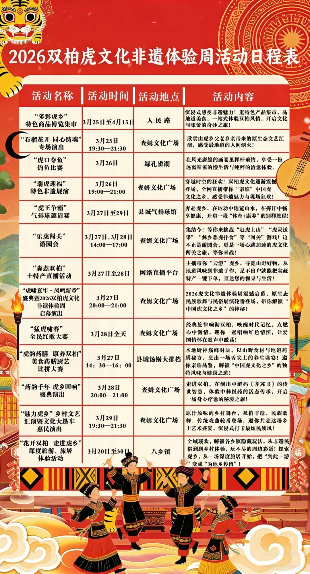 2026双柏虎文化非遗体验周,将于3月25日至4月15日火热来袭,活动期间精彩不停歇。届时邀您亲临双柏,在哀牢山的清风与星夜下,与千年的虎魂完成一场真正的对话。