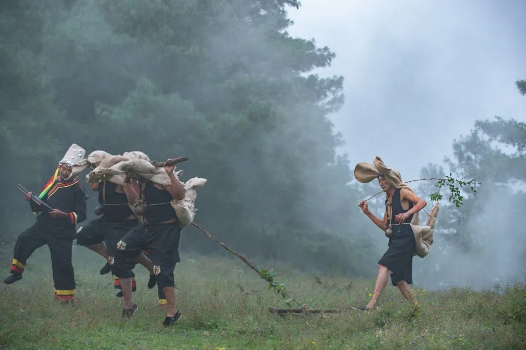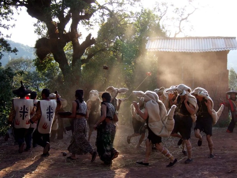 响彻哀牢山的“大锣笙”,被列入第五批州级非物质文化遗产名录,舞者均为青年男性,戴传统木制或纸糊面具,着短裤、草衣、赤脚、手提大锣,鸣锣起舞,锣声变幻不定,舞蹈形式多样。