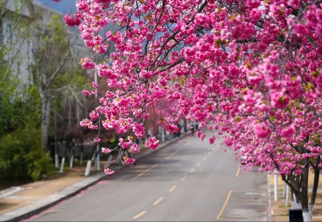 一簇簇的樱花次第绽放