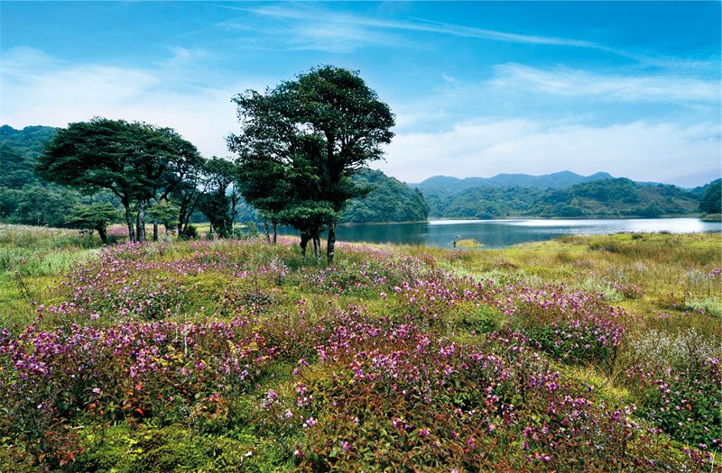 双柏九天湿地,山与水、河与草甸在这里变化交替,草甸外至山顶有万亩青翠松林,形成别具一格的自然风光。漫步在平坦开阔的山谷草甸中,仿佛进入一处被人遗忘的世外桃源。