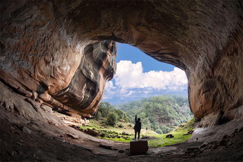 绝美的丹霞地貌隐匿于水城河周边,而葫芦洞景观最具特色,岩洞之态宛如一个巨大的葫芦,从中间被劈成两半、掏空其内,露出内壁绚烂夺目的花纹,让人惊叹于大自然的鬼斧神工。