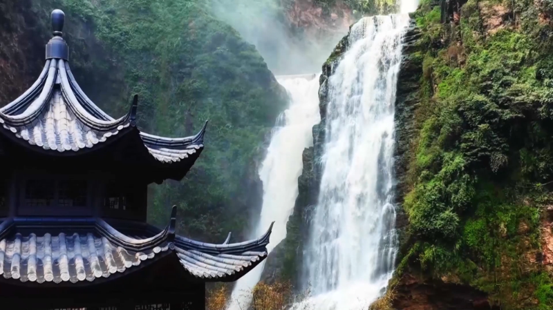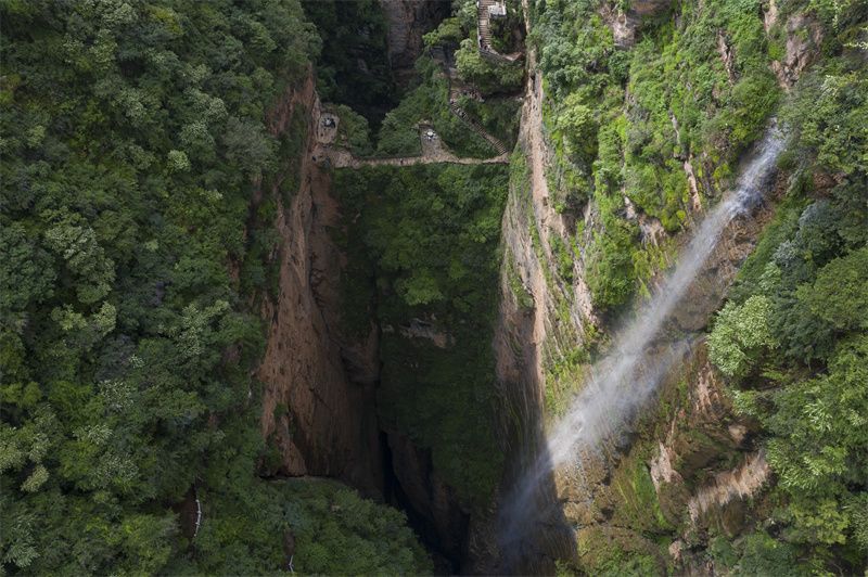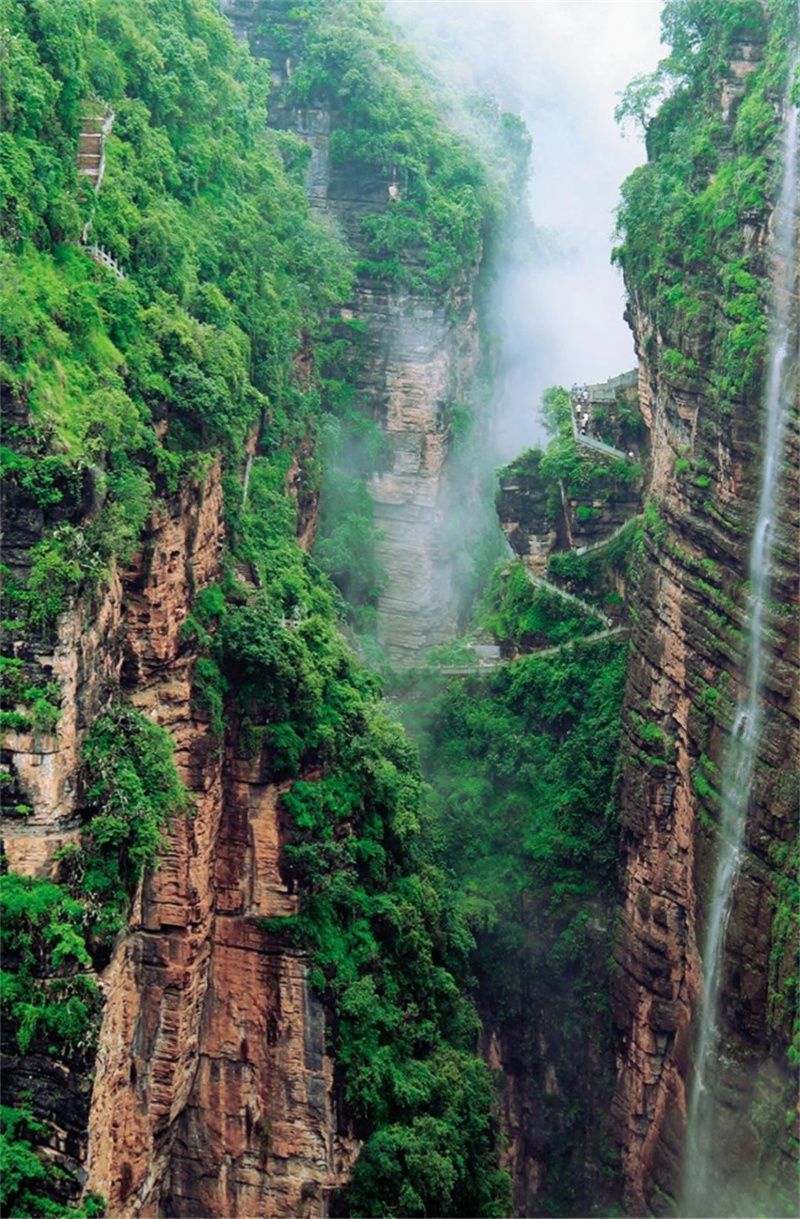 站在栈道上,可仰观两岸绝壁,俯视幽谷秘境,看瀑布垂帘、听水流歌唱……