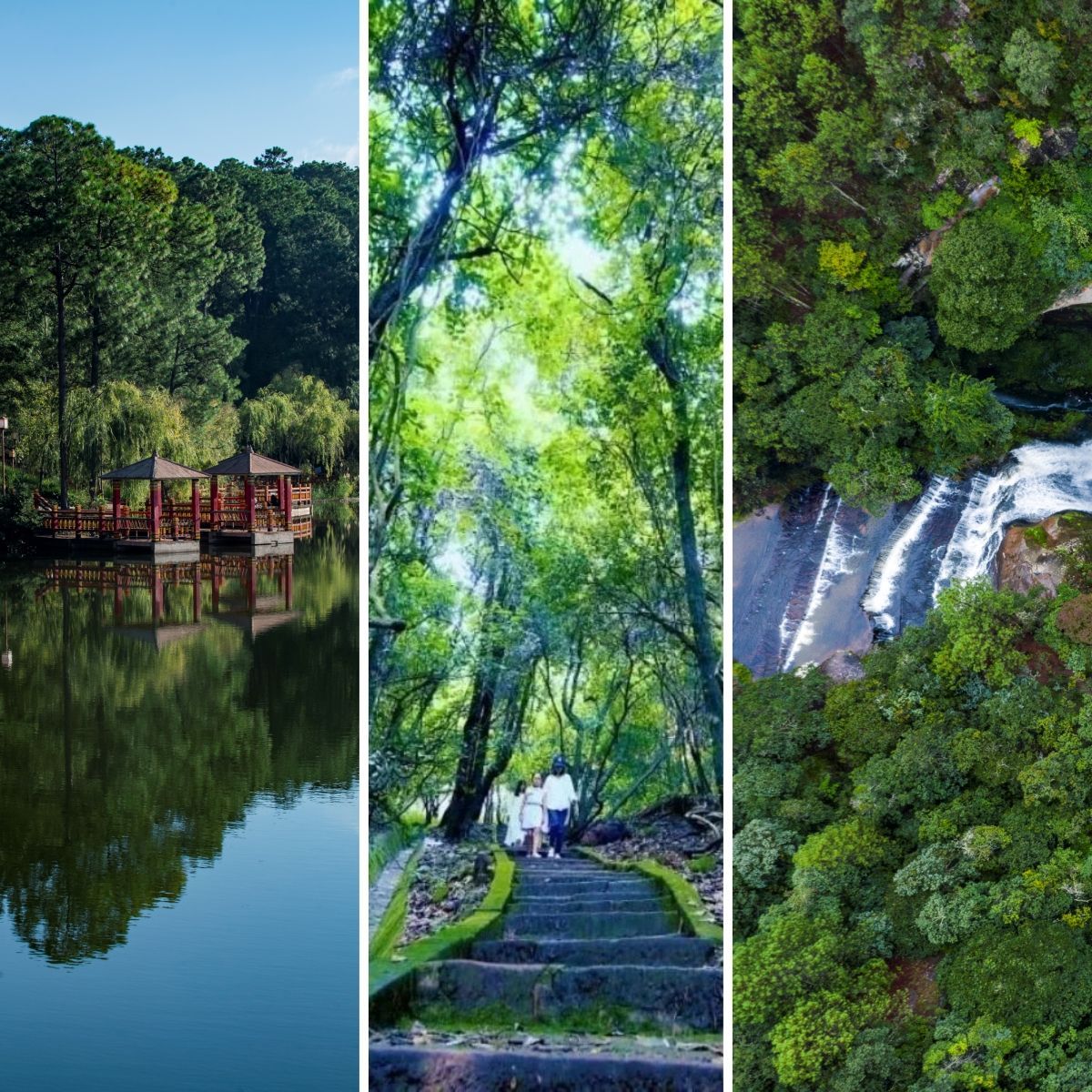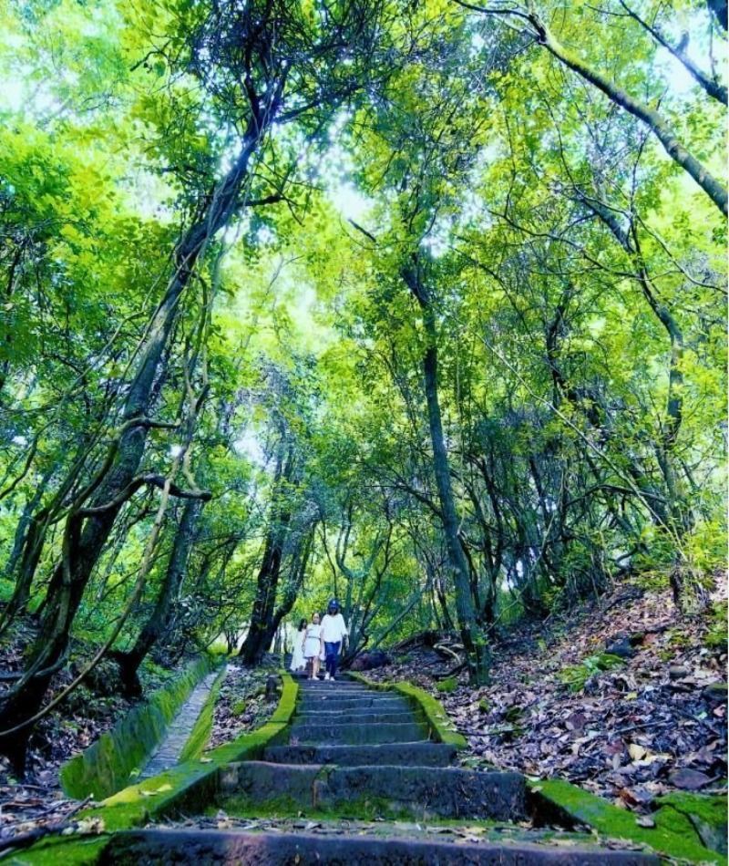沿着石阶缓缓上行,耳畔是鸟鸣与风声合奏的自然乐章,眼前是郁郁葱葱的原始森林,仿佛走进了一幅山水画卷。