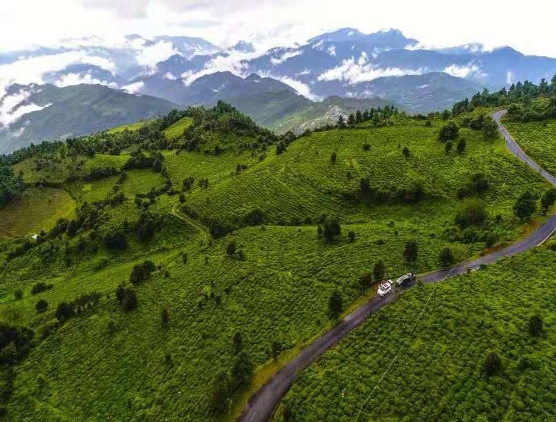 特别是那万亩青翠欲滴的茶园,从高处俯瞰,犹如一层层漾开的绿浪,翻滚着延伸向远方。