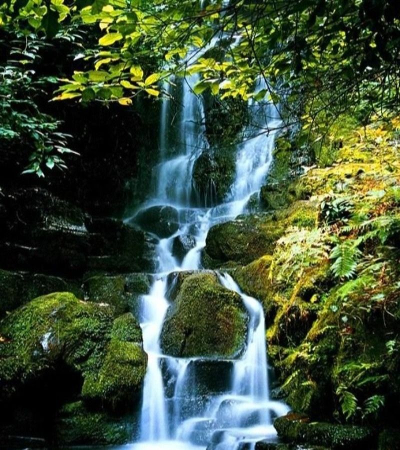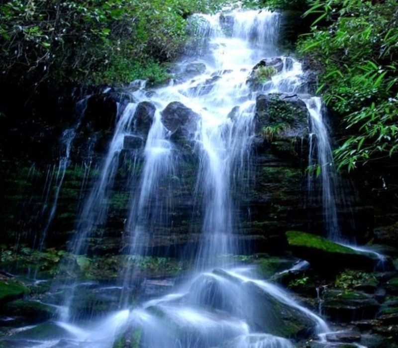 大姚三潭瀑布,流水从高山之间跌落,似帘、似玉带,瀑布脚下的潭水清澈见底,流水与大石相撞时发出的淙淙流水声,回荡在山林间。