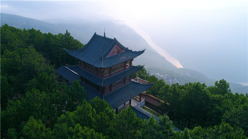 站在望江岭上,俯瞰山下金沙江如一条玉带蜿蜒流淌,与远处重重山峦构成壮阔画卷。山间气候瞬息万变,常有薄雾轻拢,人行其间,衣袖飘飘,如漫步云端。