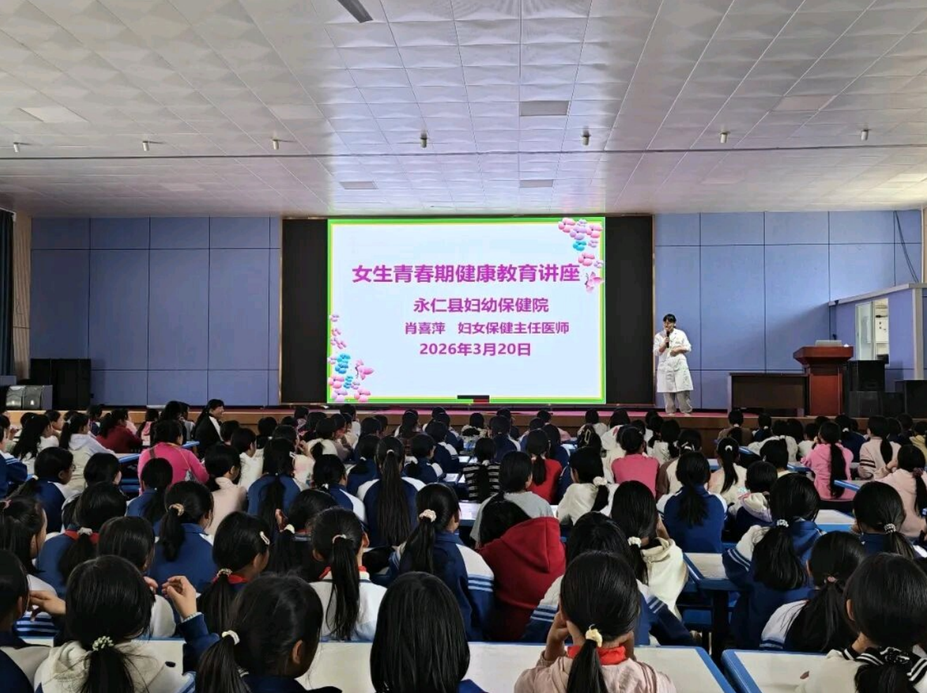 本次活动以“三月春风暖人心 群团护航伴成长”为主题,服务覆盖全校900多名学生及35名女教职工,联合县妇幼保健院、县交警大队及群团志愿者队伍,精准施策、分众服务,切实提升关爱服务针对性。县总工会、县妇联聚焦女教职工与高学段女生,精心开展妇科常见病预防、青春期健康保健、心理调适疏导等专题讲座,并提供一对一健康咨询服务,全方位守护女性群体身心健康。
