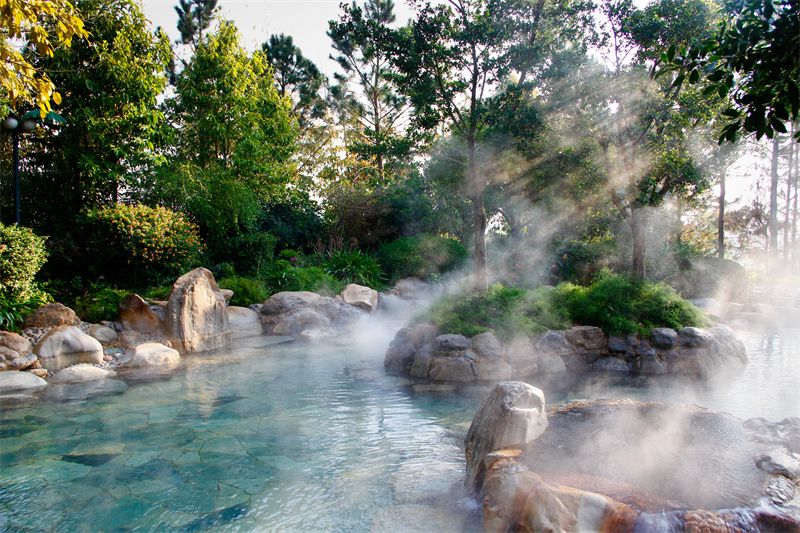 春日的弥勒,怎能少了泡汤的惬意?湖泉生态园是本地人私藏的后花园,千余亩湖水波光粼粼,湖边的沙滩细软如棉,傍晚看落日熔金,湖面泛着橘色光晕。伴着夕阳,泡进半山温泉,让春日的暖汤浸润身心,水汽氤氲中,所有疲惫都被温柔化解,这才是旅居的终极享受。