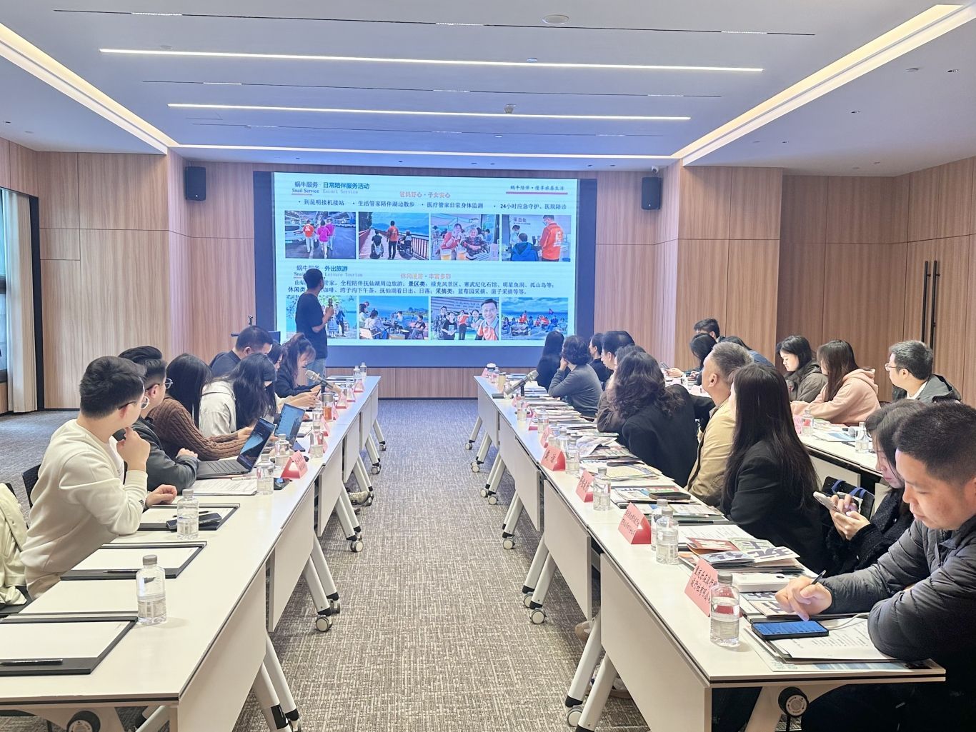 推介环节,玉溪市澄江市文化和旅游局、易门县文化和旅游局围绕辖区内优质旅居资源、旅居配套、旅居政策进行了详细介绍,玉溪集成旅行社、澄江寒武纪小镇欢乐大世界、澄江有爱文旅公司、抚仙湖圣爱健康基地等市场主体从市场需求出发,分别围绕各自旅居优势亮点、旅居产品、精品线路及优惠政策作了专题推介。