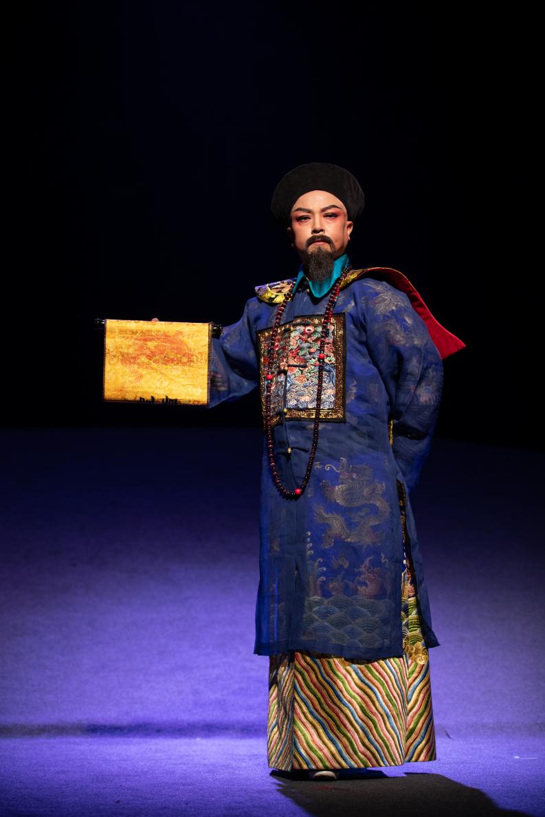 昆明市传统地方戏曲和曲艺传承展演中心(昆明市新潮文化经营有限公司)负责人、昆明戏剧家协会主席、主演杨明(饰演钱南园)凭借唱腔酣畅淋漓、表演形神兼备的滇剧艺术表演功底,将钱南园演绎得令人热血沸腾,仿佛能透过激昂旋律感受角色刚正不阿与廉洁奉公的内心世界,将钱南园的浩然正气、廉洁忠良诠释得令人赞叹不已,大呼过瘾。其他演员也将浦霖、和珅、莲心、国泰、于易简等人物性格刻画得入木三分,让现场观众沉浸于跌宕起伏的剧情发展之中,深刻感受滇剧艺术的独特魅力,赢得台下阵阵掌声与喝彩。