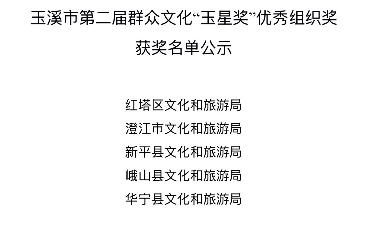 3.玉溪市第二届群众文化“玉星奖”优秀组织奖获奖名单公示