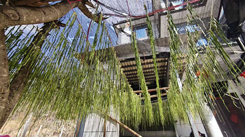在加工环节,当地没有简单走集中化、工厂化路径,而是结合农村实际,推行“庭院就地加工”。农户利用自家庭院,按照统一技术规范完成削皮、晾晒等工序,不仅降低了生产成本,也提高了产品附加值。全乡已发展贡菜庭院加工点800余个,年加工干品500余吨,加工收益直接归农户所有,户均通过加工环节可增加收入8000元左右,实现了就地增值。