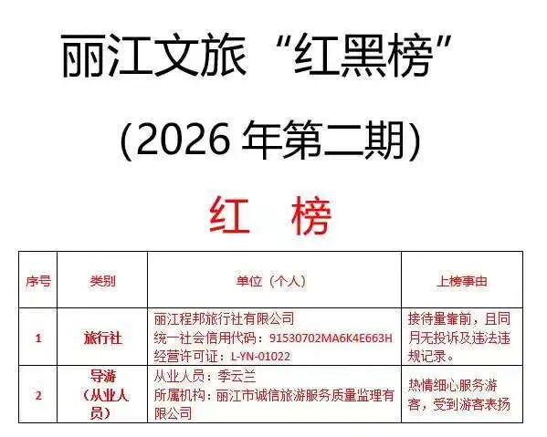 2026年第二期丽江文旅“红黑榜”发布