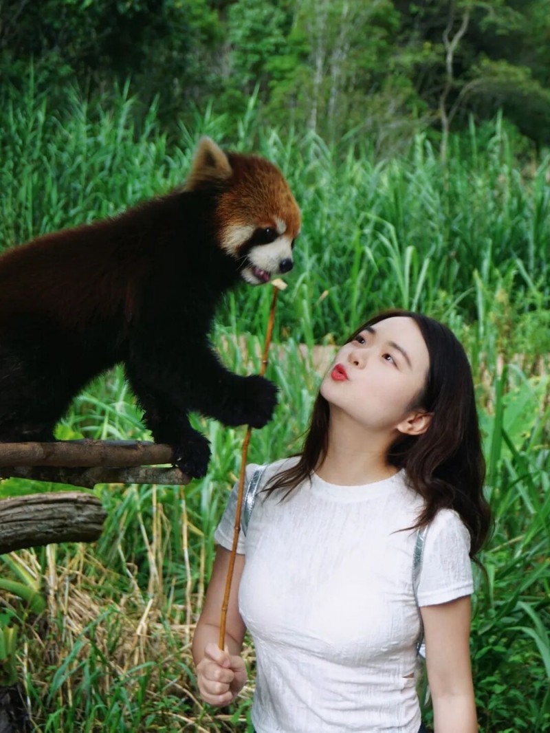 与小熊猫合影:这里的小熊猫可是“网红”,温顺可爱,一张合影绝对能刷爆朋友圈。