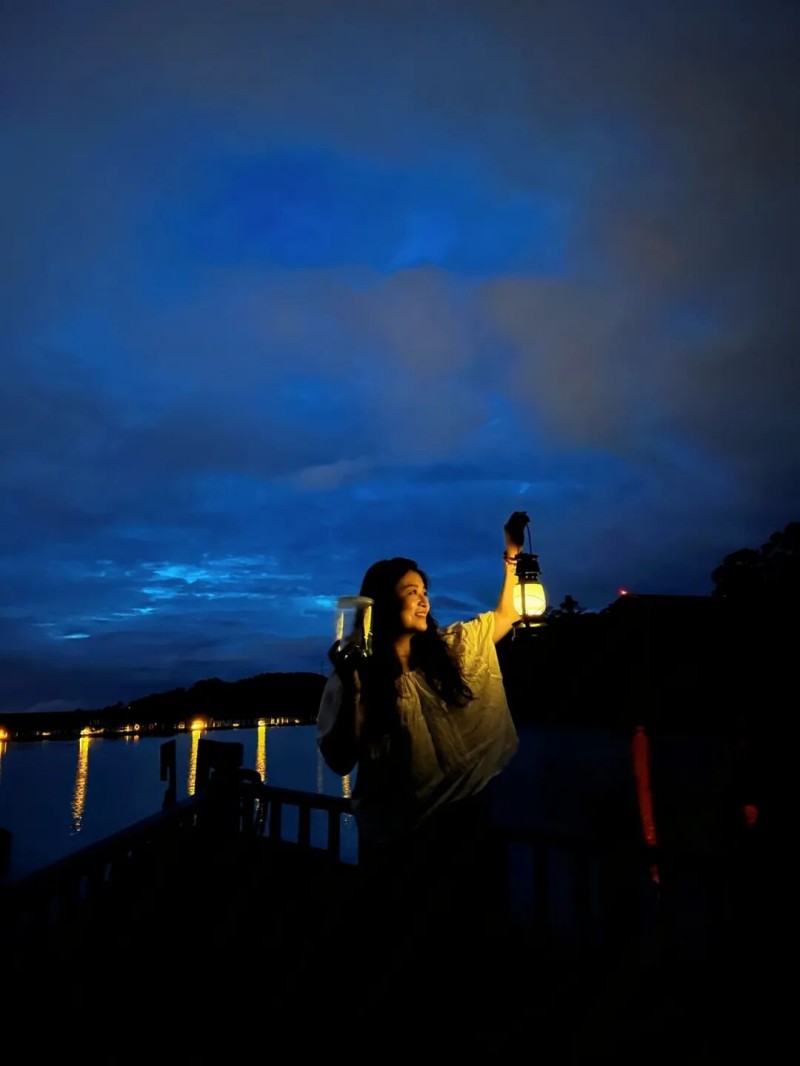 第一天:雨林野趣。带孩子去幽兰深谷溯溪,在自然课堂里认识植物;下午用大豆荚做手工,或用陶罐煮一壶咖啡。夜晚,乘“萤火之舟”泛舟定波湖,看萤火虫如繁星点点,浪漫至极!