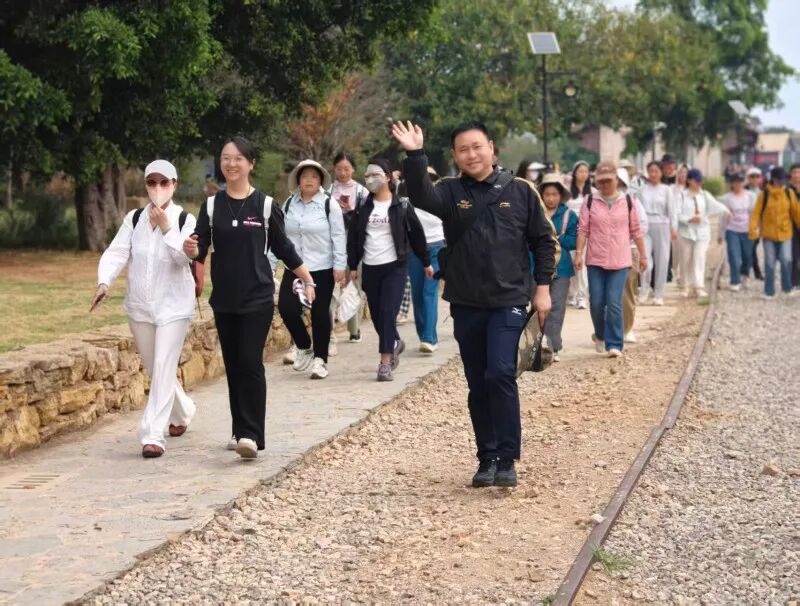 碧色寨,这座因滇越铁路而闻名的小站,见证了云南百年历史文化。职工们行走在“芳华天梯”,触摸斑驳铁轨、凝望法式建筑,重温那段屈辱与抗争、开放与自强交织的历史。滇越铁路不仅是一条交通动脉,更是一部民族奋斗史。重走“芳华路”,不仅是身心的放松与意志的磨炼,更将红色教育融入春游,让职工在历史现场潜移默化接受思想淬炼,寓教于乐,润物无声,正是《意见》所强调的“将思想政治引领贯穿职工文体活动全程”的体现。