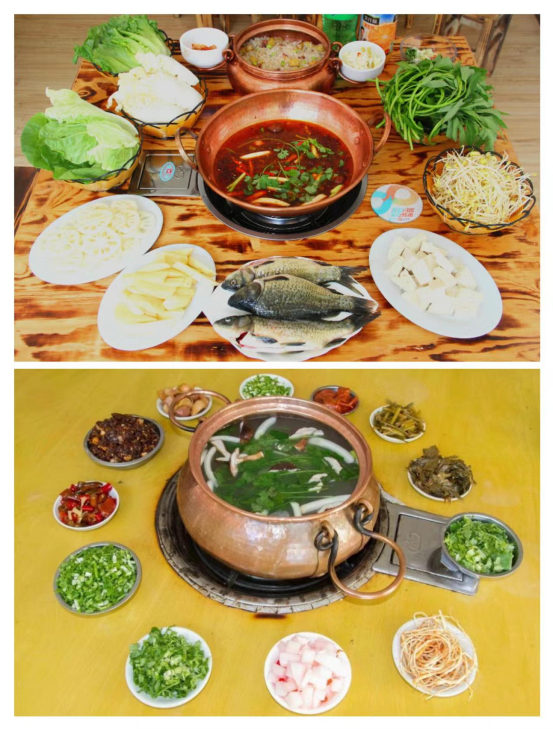 铜锅煮鱼原是江川湖边渔民的家常菜。轻巧传热的铜锅,舀入清冷的湖水或泉水,放入鲜鱼烹煮,然后配上葱、姜、大蒜、火烧干辣椒和薄荷的秘制蘸料,鱼汤香甜,鱼肉鲜美,让人回味无穷。