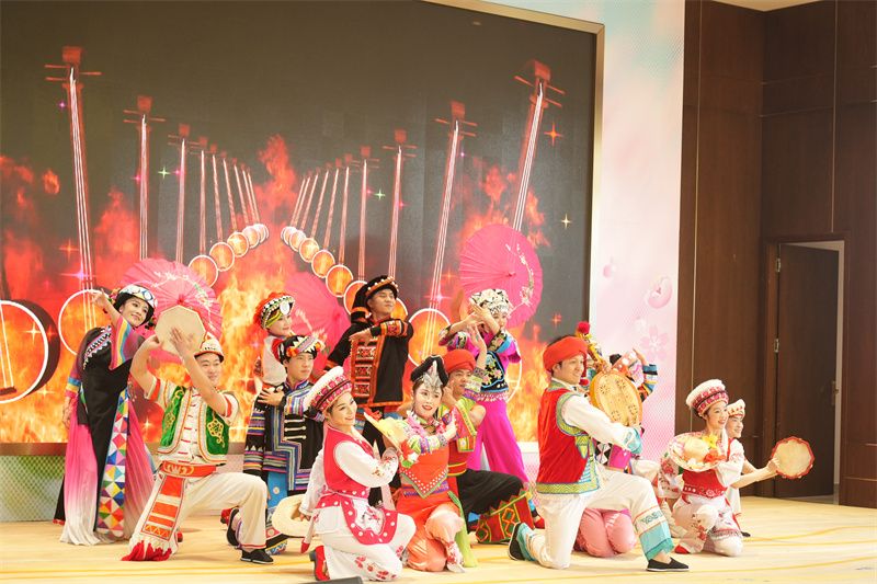 现场,红河州民族歌舞精彩绽放,舞蹈《花开彩云南》《千年紫陶》、歌曲《永远的诺玛阿美》轮番上演,尽展红河州多元民族文化与独特艺术魅力。