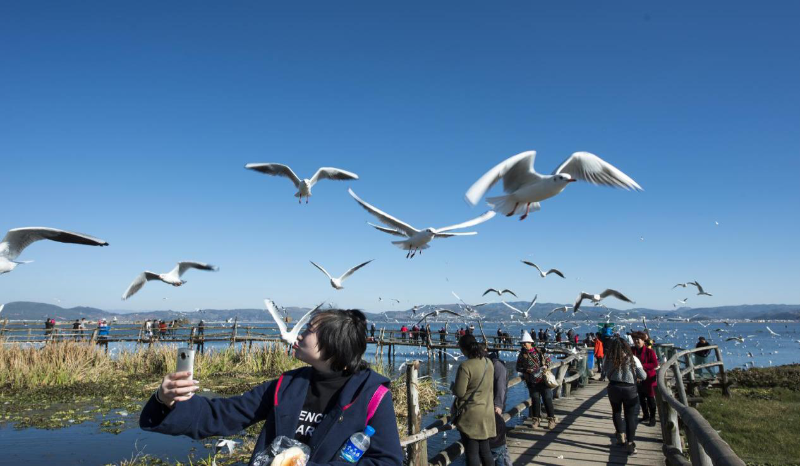 (杞麓湖国家湿地公园观海鸥)