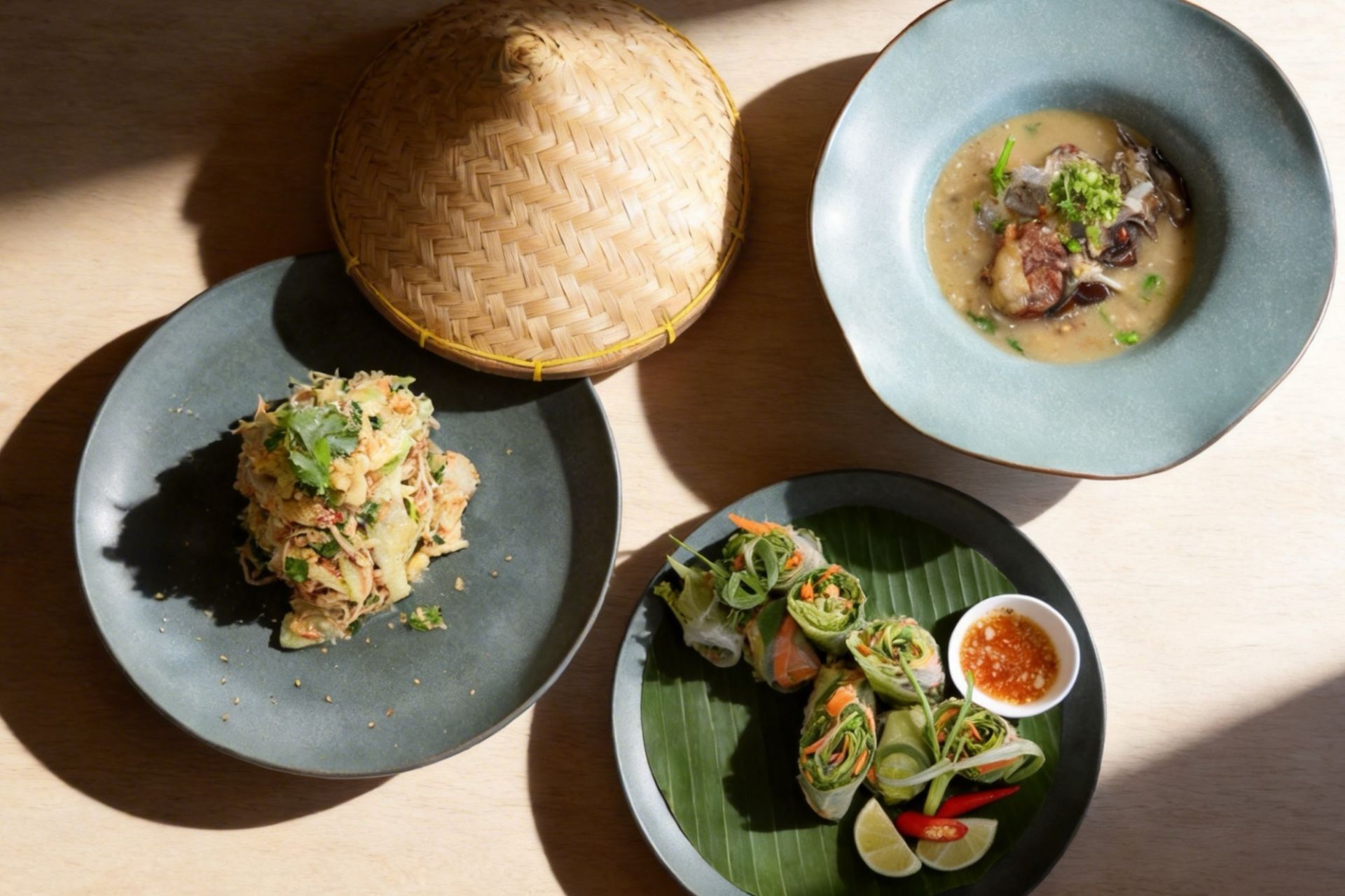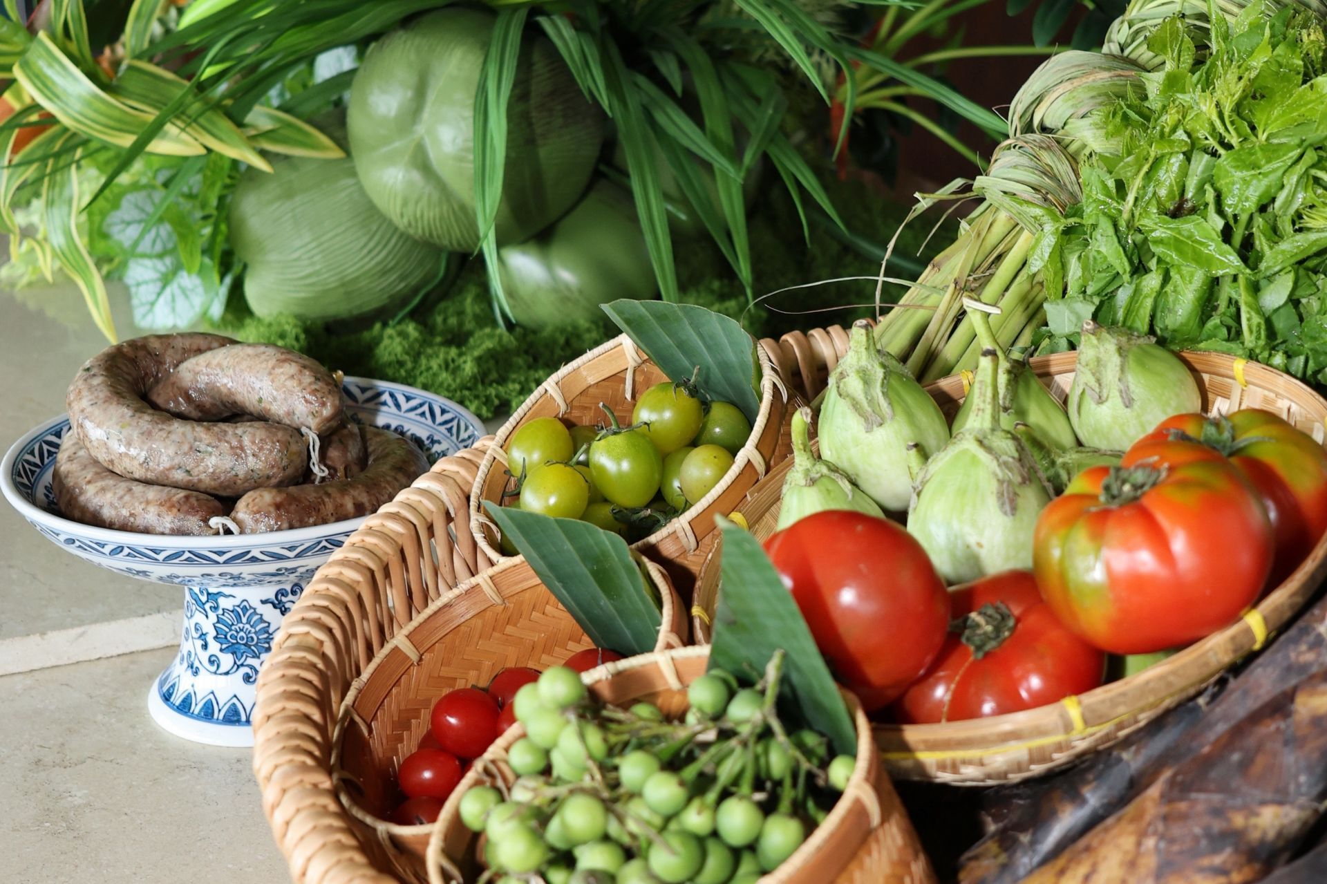 本次活动聚焦老挝地道风味,精心呈现舂茄子酱、舂炸猪皮酱等特色蘸酱,牛肉米粉、手作琅勃拉邦香肠等经典美餐,以及椰汁香蕉等清润甜品。厨师团队沿用舂、蒸、烤、芭蕉叶包烧等老挝传统技法,还原其饮食“七分狂野,三分温柔”的独特气质,每一道菜品都承载着老挝的风土底蕴与千年文化记忆。