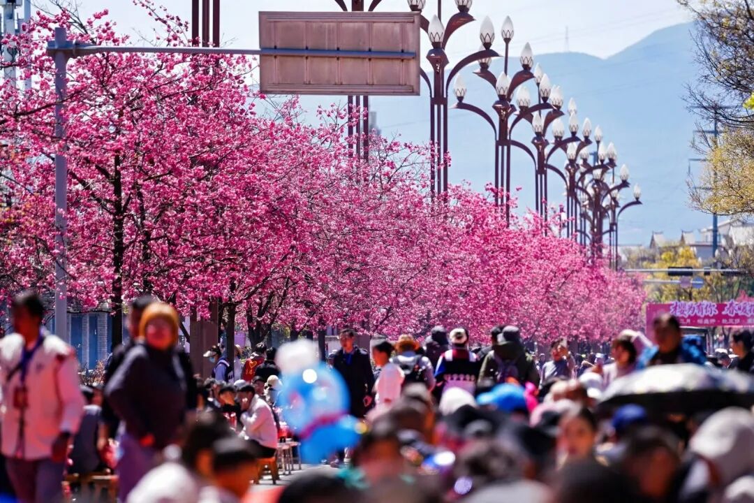 本次活动创新解锁文旅融合新场景,让传统文化与现代休闲完美碰撞,成为春日丽江最吸睛的亮点。雪山路樱花大道上,“樱花树下下午茶”与千人长街宴相映成趣,粉白的樱花随风飘落,游客们在花海中品美食、赏美景,随手一拍都是氛围感大片。