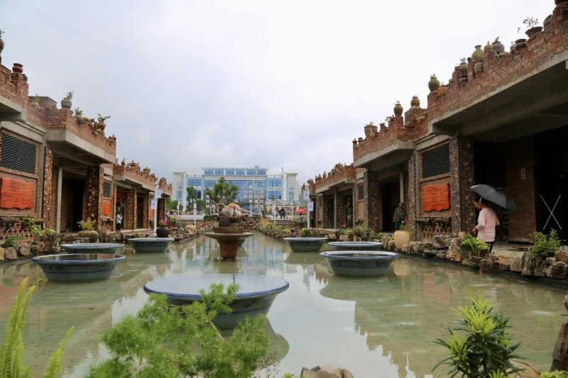 e农数字融创广场位于浦贝集镇,离玉楚高速易门南出口2.4公里。由农特产品展示交易中心、民族团结广场、e农体验中心和浦贝人家4个功能区构成,是集中宣传展示易门陶瓷文化、民族文化、非物质文化遗产及优质农特产品展销的休闲广场。广场旁的“浦贝人家”公园以石磨为阶,有楹联、砂石水缸、仿古龙窑、忆窑亭、陶瓷文化墙等景观,用石磨盘、农耕用具等老物件打造的创意型庭院景观别具一格,赋予游人生态宜居、朴实自然的沉浸式体验。
