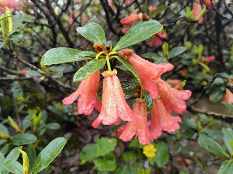 一至二月,迪庆寒意未消,碧罗雪山的魁斗杜鹃、粉果杜鹃已迎雪绽放,为银装素裹的高原点染第一抹嫣红。地生兰悄然吐蕊,河谷油菜花铺展金浪,在料峭寒风中酿出一缕温柔春意。