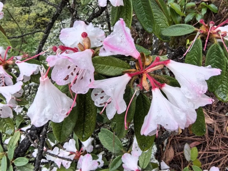 五月,杜鹃漫山如霞,红棕杜鹃、紫玉盘杜鹃从普达措铺展至小中甸,织就一片锦绣原野。傈僳村寨旁,光叶珙桐白花轻展,如万千白鸽栖落枝头,写尽高原浪漫。