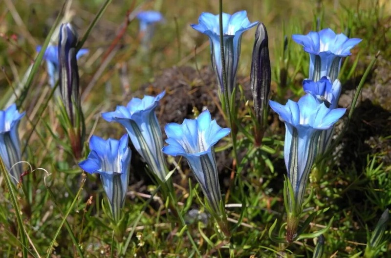 八至十月,高原渐凉,晚花悄然绽放,为山野生灵留一缕芬芳。十月深秋,龙胆沐光而开,绽出深邃幽蓝,为高远天地添一抹诗意清辉。