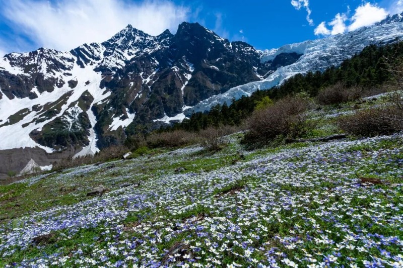 七月,高山草甸与流石滩迎来百花盛宴。绿绒蒿绽放蓝紫微光,塔黄、雪莲花于寒风中傲然挺立,以倔强姿态,书写高原生命的热烈与纯粹。