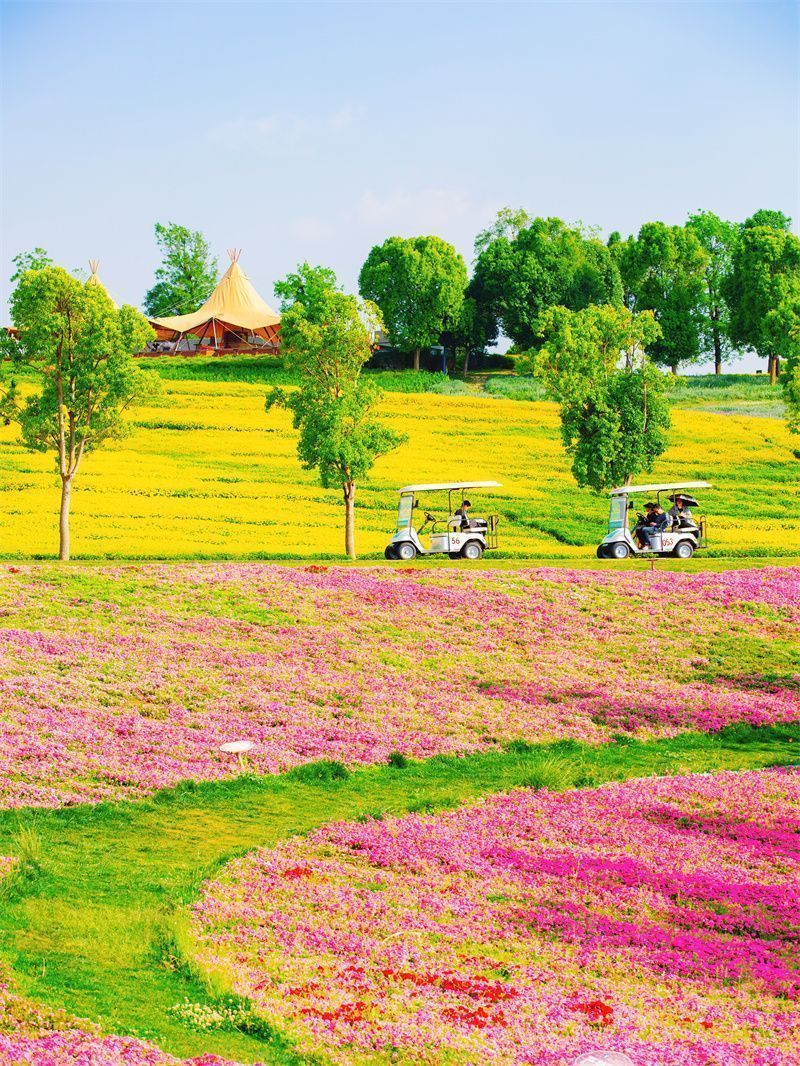 在弥勒太平湖森林小镇里,美女樱、木春菊、春樱花竞相绽放,千亩花海正值盛期,还有全新打造的“球球园”,极富造型感!你可以漫步花海拍照打卡,或在木屋别墅里枕着花香入眠,邂逅一场春日花事。