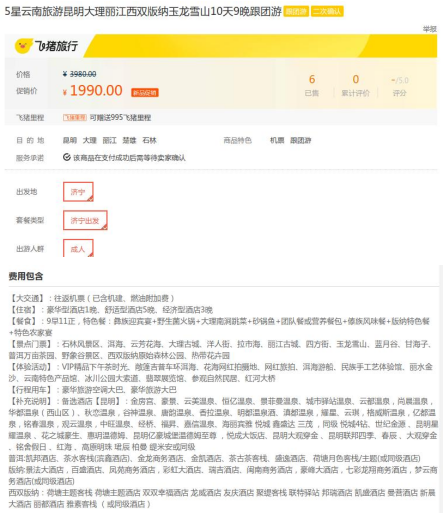 文中部分取证曝光截图来源于 飞猪旅行网、“北京顺心旅程国旅专营店”详情页
