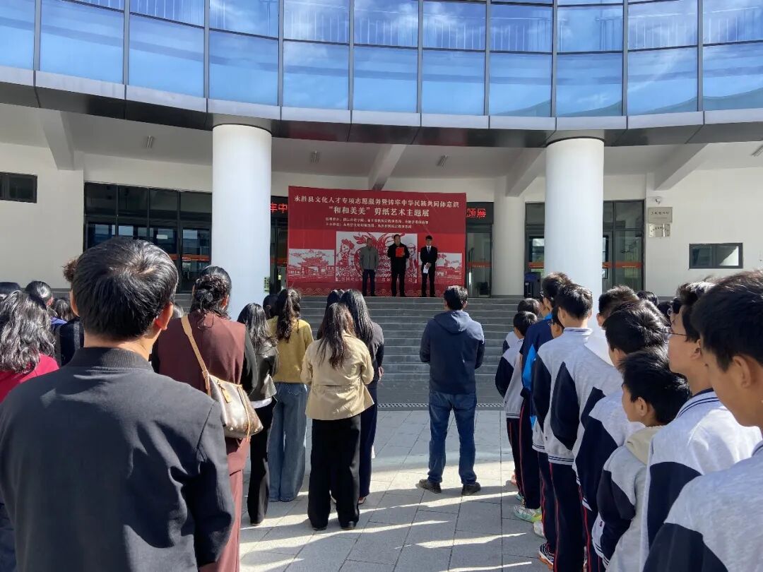 本次活动由永胜县文化和旅游局、永胜县民族宗教事务局主办,邀请县直相关部门代表、县民族中学部分师生和剪纸爱好者到场观展。