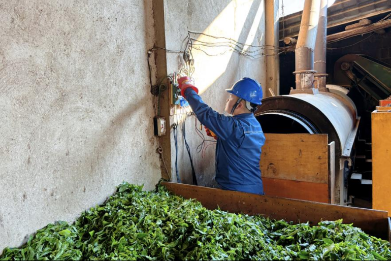 春茶生产,一刻也离不开电。杀青机、烘焙机等设备对电力稳定性要求极高,一旦停电,整批茶叶可能报废。为此,中广核墨江龙坝光伏电站员工与南方电网云南普洱墨江供电局组成联合服务队,提前部署、主动上门,对茶农家中的接地线路、开关插座及茶叶生产专用表计进行细致排查,及时消除线路老化、接头松动等隐患,从源头上守牢用电安全防线。“有了他们定期来检查,我们开动机器心里踏实多了。”一位茶农感慨道。
