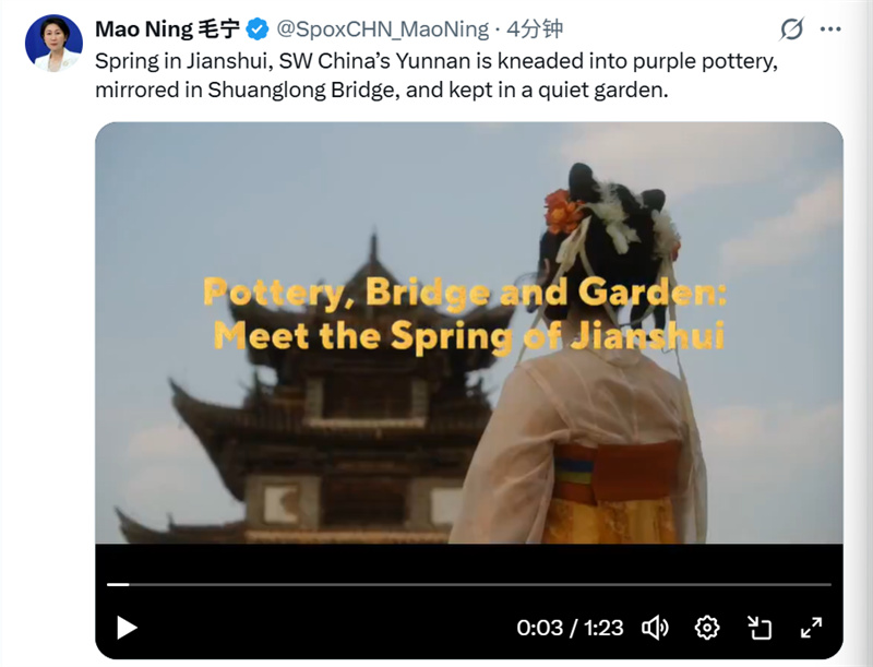 4月7日,外交部发言人毛宁再一次通过海外社交账号,让世界看见建水的诗意春天。这已是今年以来外交部第三次为建水这座千年古城“打call”,这不仅仅是一次推介,更是一声春日的号角。