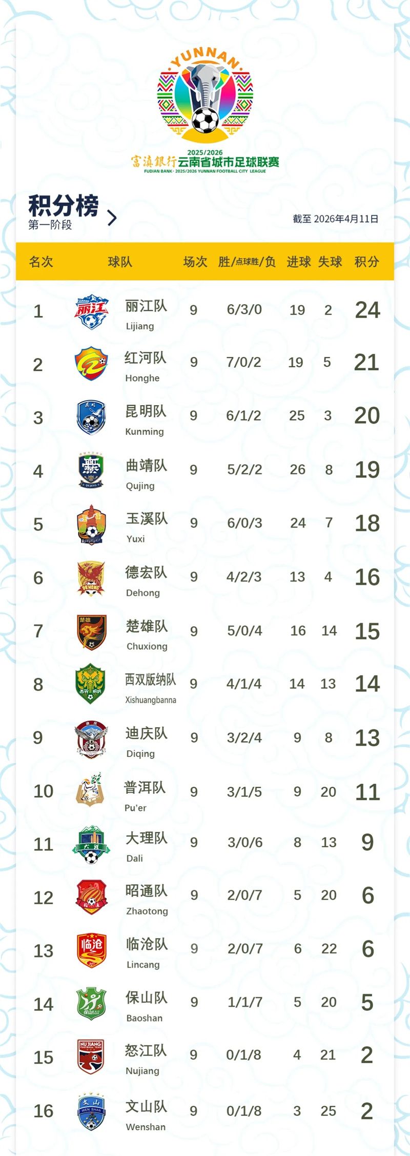 在4月11日结束的“滇超联赛”第九轮比赛中,红河队客场迎战普洱队,最终比分2:1战胜普洱队获得胜利。