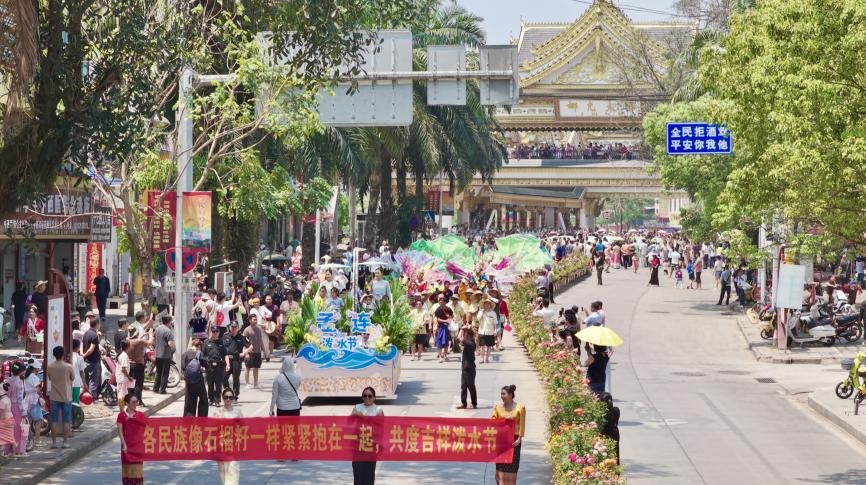 4月12日,中缅边境的孟连傣族拉祜族佤族自治县处处欢歌笑语、水花飞扬,孟连县2026年泼水节开泼盛典在娜允广场隆重开幕。各民族同胞身着盛装,与海内外游客齐聚一堂,以水为媒、以节会友,在互送祝福中深化情谊,共绘边疆民族团结、守望相助的生动画卷。