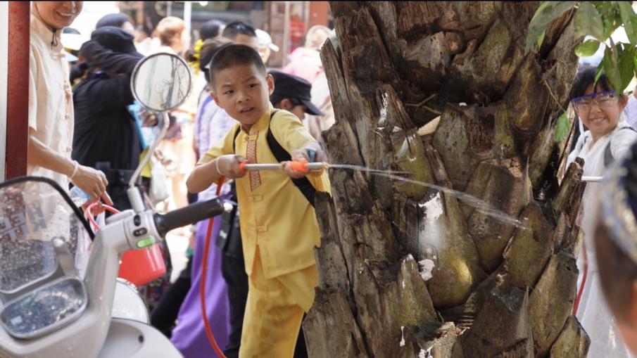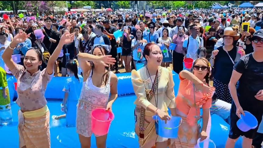 随着现场号令响起,开泼仪式正式启动。晶莹水花瞬间腾空而起,人们手持水盆、水枪,尽情泼洒,寓意洗尘祛晦、祈福纳祥的吉祥之水。不分民族、不分长幼、不分本地与远方,众人在水花中奔跑嬉戏、欢笑祝福,将傣历新年的喜悦与美好期盼,传递给身边每一个人。