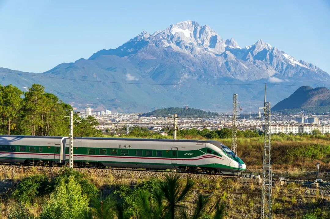 “复兴号”动车在丽香铁路上行驶。图源:云南日报