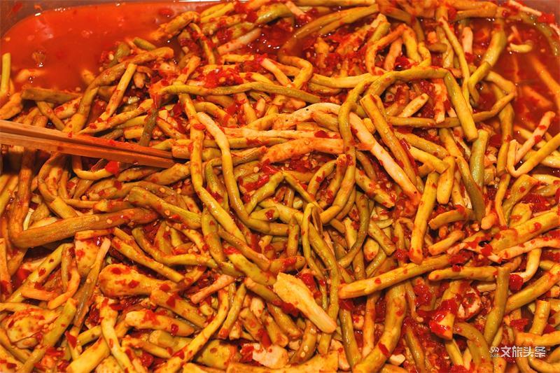 弯根是一种水生芋科植物,多产于元江热坝区,花、茎、根均可食用,可炒、煮、炖、腌等,其味甜美,但最有名的是腌制的弯根酸菜,弯根酸菜色泽鲜艳,味道酸辣爽口,深受吃货喜爱,是元江傣家人的传统美食,待客必不可少的佐餐佳肴。如今,弯根酸菜以其自然生态、风味奇特,扬名省内外,成为外地游客喜欢带走的元江特产之一。