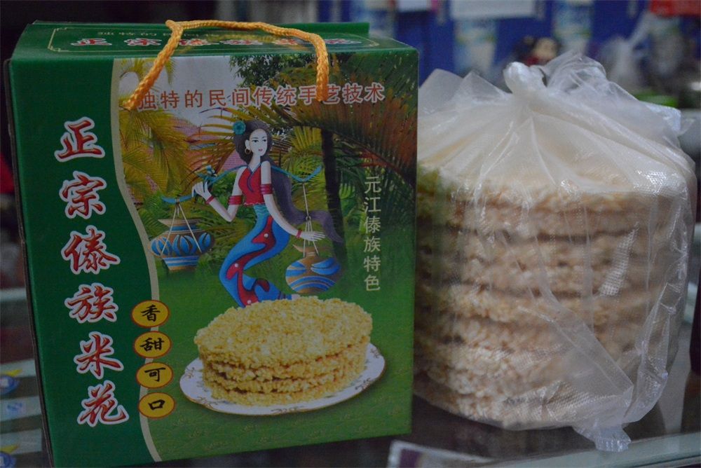米花,是元江傣族群众喜爱的一种民间传统特色食品,傣语俗称“毫崩”。以其色泽洁白、香甜酥脆、爽口化渣、食后有稻谷清香余味等特点,深受广大群众喜爱,是旅游、休闲、馈赠亲朋好友的理想食品。
