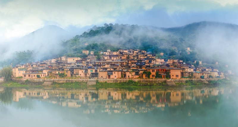 坡垤村的彝家土掌房依山而建,村民临水而居。错落有致的村子倒映在碧绿的池水中,层层叠叠。土掌房的暖色给这个峰环水抱的山村染上了梦幻的色彩。傍晚,土掌房上升起缕缕炊烟,那是归家的呼唤。